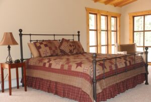 Our mountain property is fully furnished and equipped with everything you need for a comfortable stay. This includes cozy bedding, fully appointed kitchen, ample crafting space, and outdoor seating to enjoy the beautiful mountain views. Just bring your food, personal items and crafting supplies!