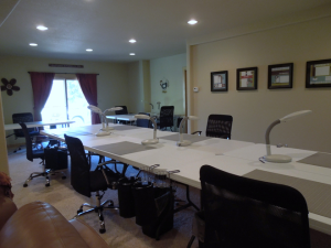 The heart of the cabin is the workshop. Here you will find nine sizable workstations complete with comfortable task chairs with lumbar support, six foot tables to spread out your supplies, individual lighting and craft mats. While you are losing yourself in your crafts, you are just steps away from the bistro room including a microwave, mini fridge and complimentary snacks.